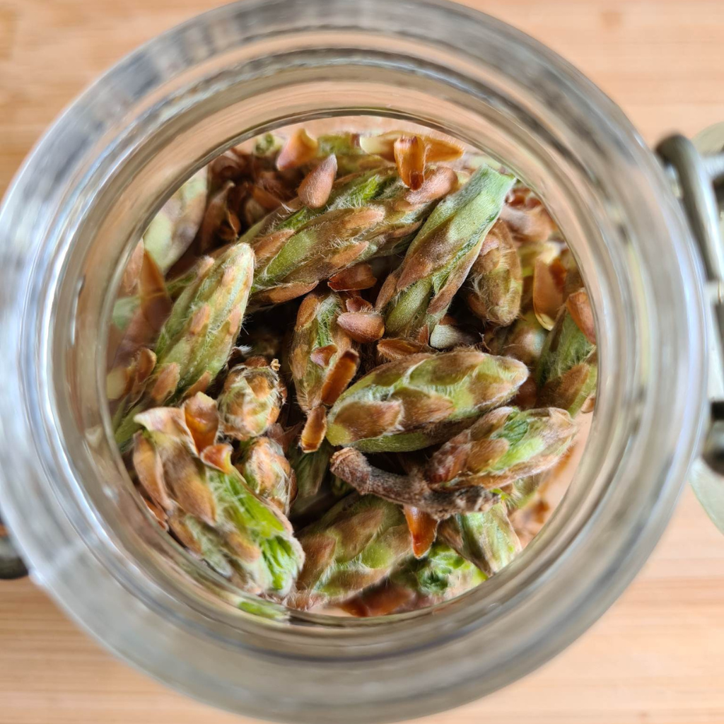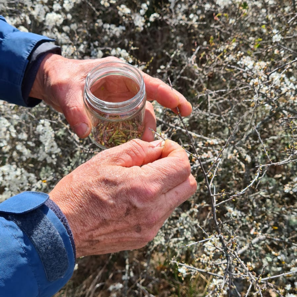 – Cueillette selon essence d’arbres rencontrées + Mise en macération +